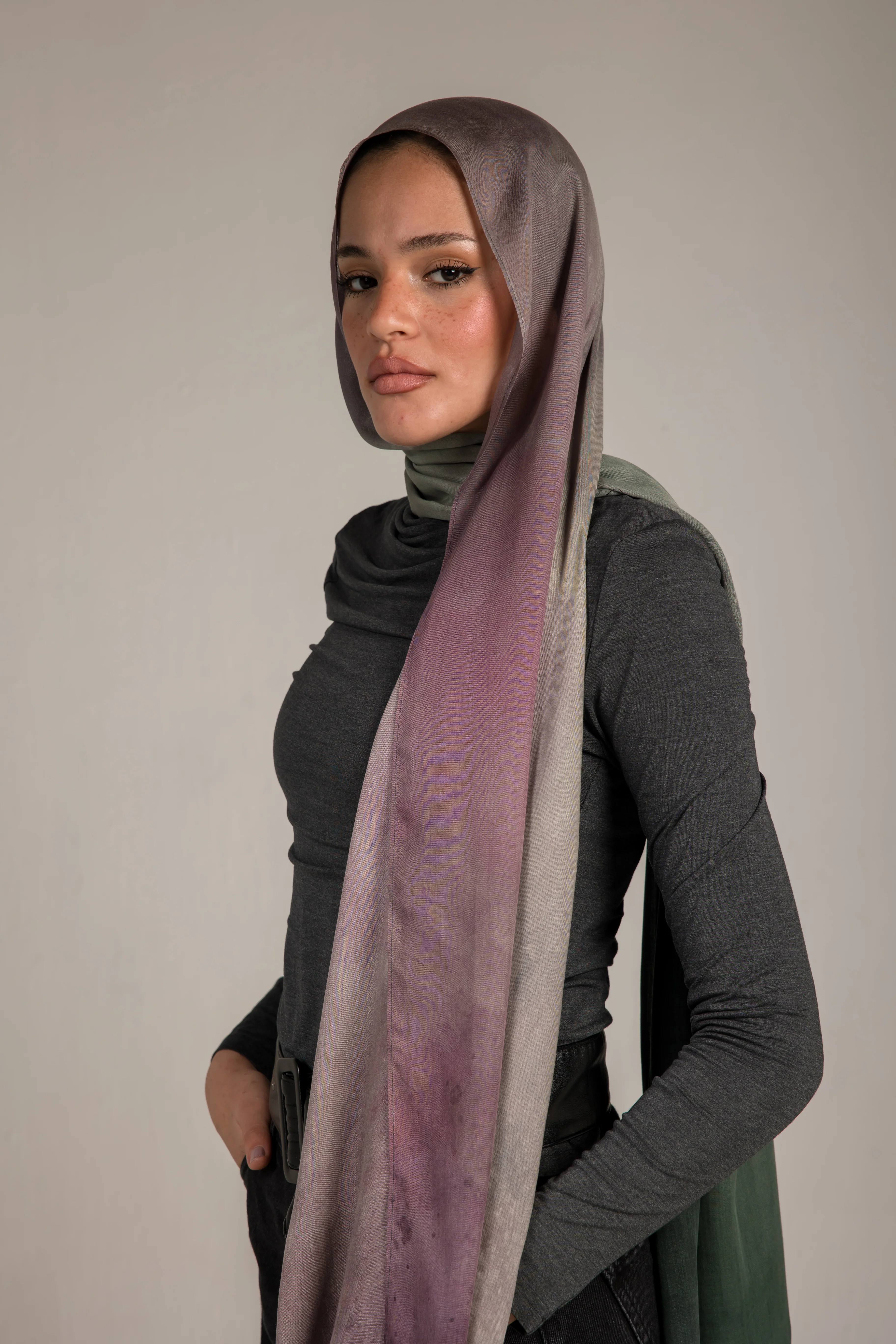 A classic modal scarf infused with lunar tones. This ombre modal scarf layers purples and greys, a chic ombre modal scarf design that lingers like celestial dust.